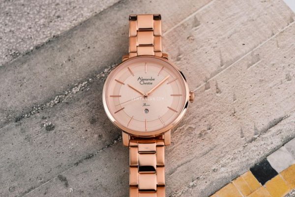 Jam Ladies Rose Gold Dial dengan Strap Kulit Cokelat Gelap AC-2878-LD-LRGLN