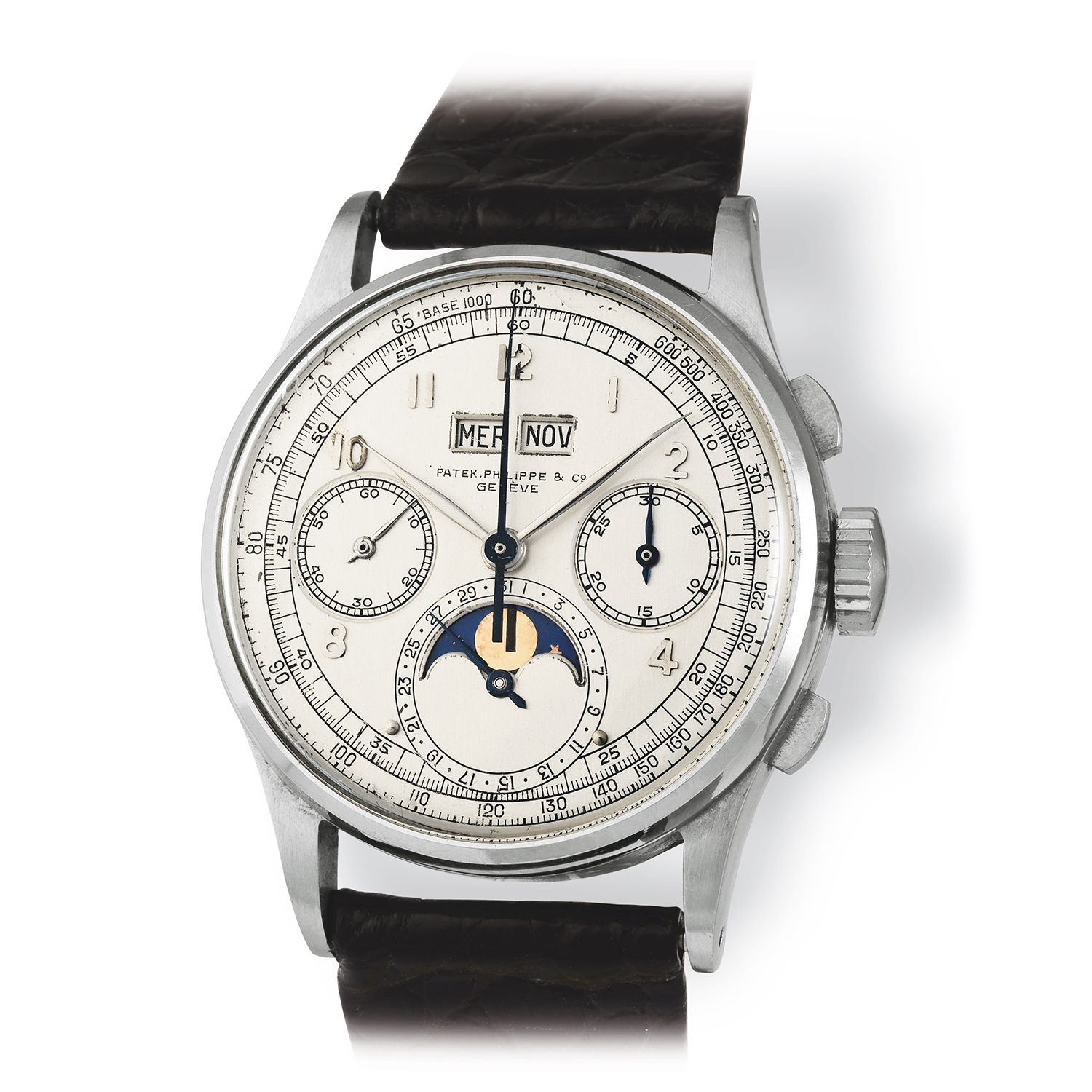 Patek Philippe Ref. 1518 adalah model yang sangat bersejarah dan menjadi salah satu pionir dalam dunia jam tangan chronograph perpetual. Diluncurkan pertama kali pada tahun 1941, model ini merupakan jam tangan chronograph pertama yang menggabungkan kalender abadi dengan mekanisme chronograph secara bersamaan. Keunikan ini menjadikannya pionir dalam inovasi horologi, dan model ini diproduksi selama dua dekade sebelum akhirnya dihentikan pada tahun 1954. Versi stainless steel dari Ref. 1518 sangat langka, karena mayoritas yang diproduksi menggunakan bahan emas atau platinum, sehingga menjadikannya sebagai koleksi yang sangat dicari.