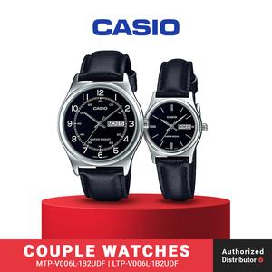 Jam tangan Casio pasangan ini terdiri dari dua model yang dirancang secara serasi, yakni MTP-V006L-1B2UDF dan LTP-V006L-1B2UDF. MTP-V006L-1B2UDF merupakan model pria dengan tampilan yang maskulin dan kokoh, sedangkan LTP-V006L-1B2UDF adalah model wanita yang lebih ramping dan elegan. Keduanya memiliki desain yang simpel namun tetap stylish, cocok digunakan dalam berbagai kesempatan, baik formal maupun kasual. Keduanya juga menampilkan dial berwarna putih bersih dengan indeks garis yang minimalis, memperkuat kesan modern dan timeless. Jam tangan ini mengusung konsep pasangan yang serasi namun tetap memiliki karakter masing-masing, sehingga cocok sebagai simbol cinta dan keserasian pasangan.